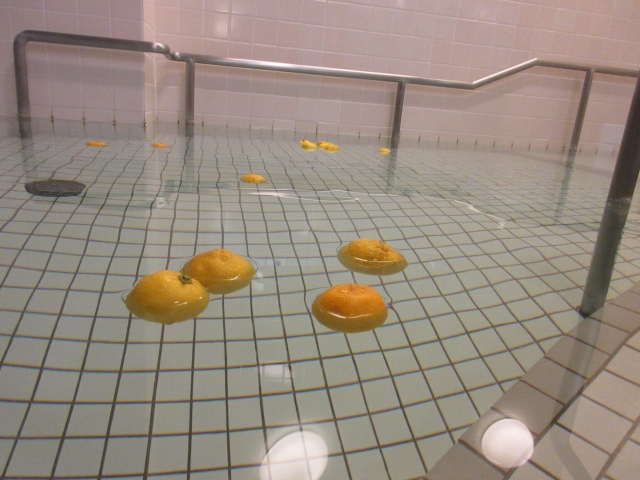 冬至の日には“かぼちゃを使った食べ物をたべる”“「ん」のつくものを食べる”といった風習が知られていますが“柚子湯”もそのひとつです。 冬が旬の柚子は香りが強く、その強い香りが邪気を祓う意味合いがあるため、運を呼び込む前に体を清めるという考えがあります。柚子は血行を促進して冷え性を緩和してくれる効果があり、柚子の香りがリラックス効果ももたらしてくれます。 感謝の郷でもお風呂に柚子を浮かべ、柚子湯を楽しんでいただきました。 柚子のさわやかな香りが、浴室を満たしてくれていました。 |