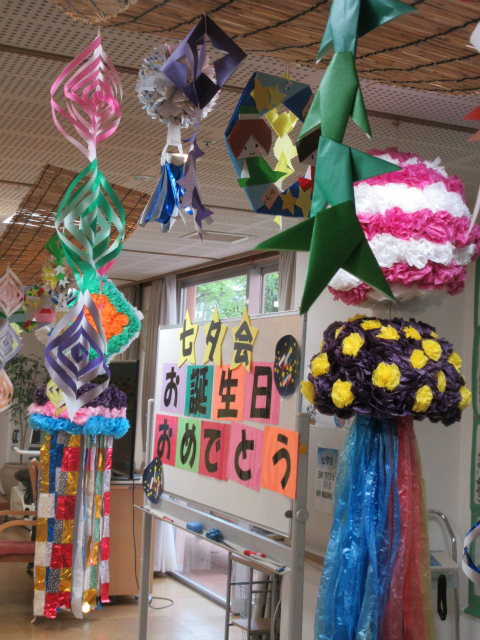ご入居者様には、七夕飾りづくりから参加いただきました。