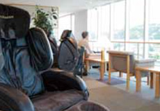 マッサージチェアを設置した心身のリラックススペースをはじめ、本棚が並ぶ図書コーナー、気軽に集えるラウンジスベースなど、リラックスからエンジョイまで、多彩な時間を演出します。