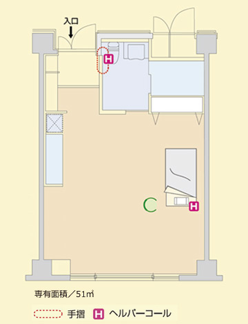 ⇒ 【ルームプラン 51u居室】http://www.kanshanosato-iwaki.com/shirayuri/price2_51.html